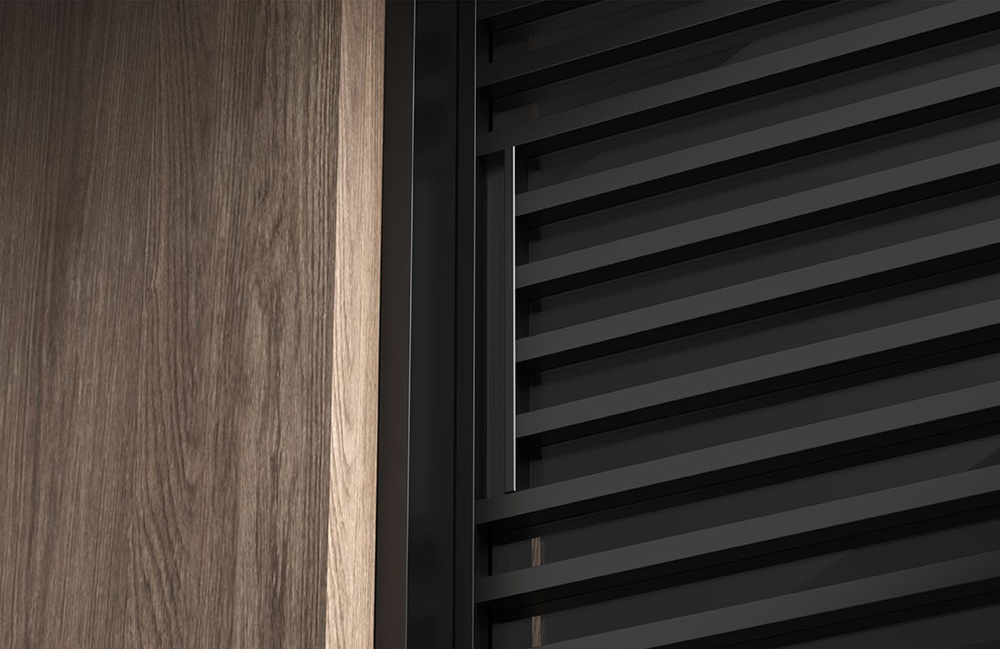 用外掛 L 型設計,極簡線條完美匹配格柵的造型藝術。