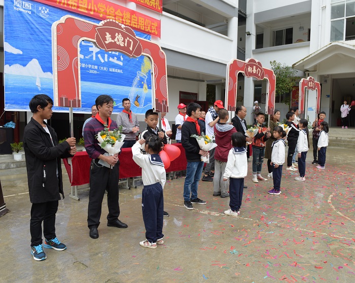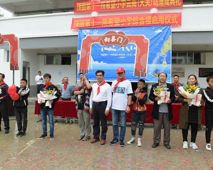 頂固董事長、義工團團長林新達,大關(guān)縣委常委、副縣長唐國偉先生,大關(guān)縣團縣委書記曹遠江先生,大關(guān)縣教育體育局副局長李文才先生等嘉賓,以及由頂固經(jīng)銷商、供應(yīng)商、行業(yè)媒體和愛心人士等組成的頂固義工團,與該校師生們共同參加了此次希望小學(xué)的落成典禮。