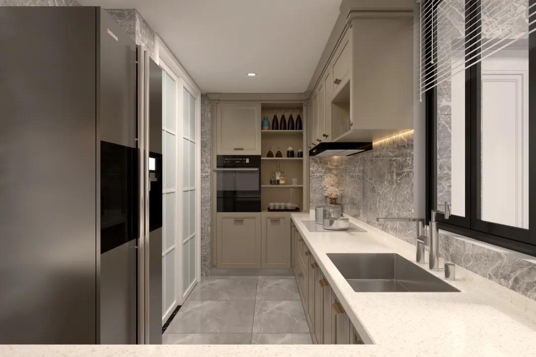 迎合時下年輕人對精致生活的追求,廚房的設(shè)計也輕奢無比。大理石墻面高雅清潔,U型設(shè)計操作方便。當(dāng)下廚都成為一種享受,每天每一餐都會香噴噴。