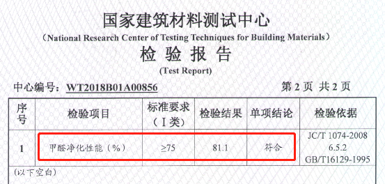甲醛凈化性能檢測報告