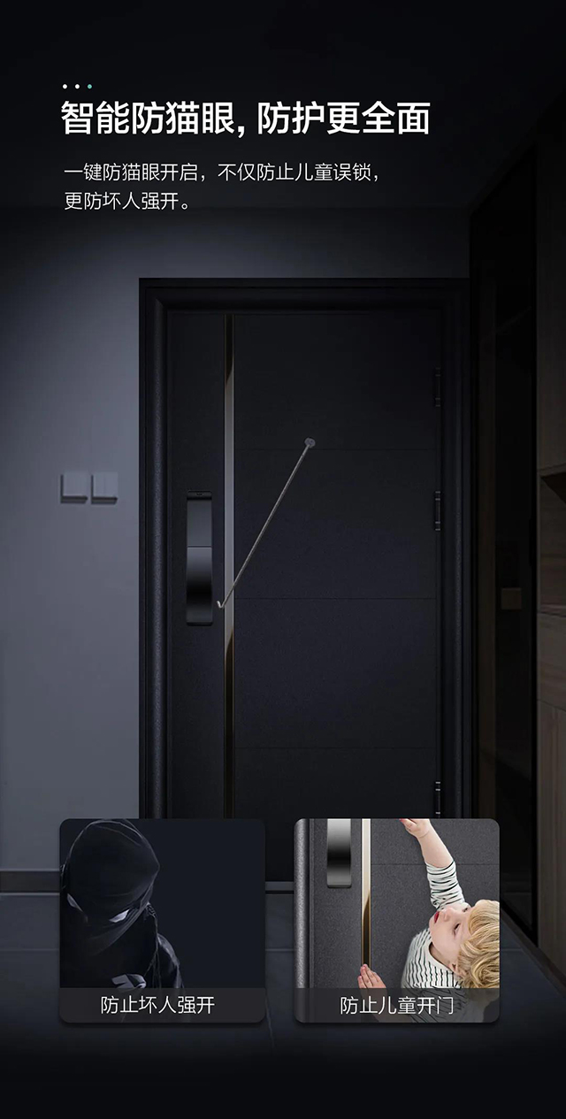 門鎖作為家的第一道防線,頂固T8F-3D人臉識(shí)別智能鎖追求極致的安全體驗(yàn)。鎖芯鎖體均采用目前行業(yè)安全級(jí)別更高的C級(jí)鎖芯與三防鎖體,可以有效防止被撬鎖,強(qiáng)行撞門等情況;除此以外,還可以一鍵開(kāi)啟防貓眼功能,讓不法分子無(wú)計(jì)可施。