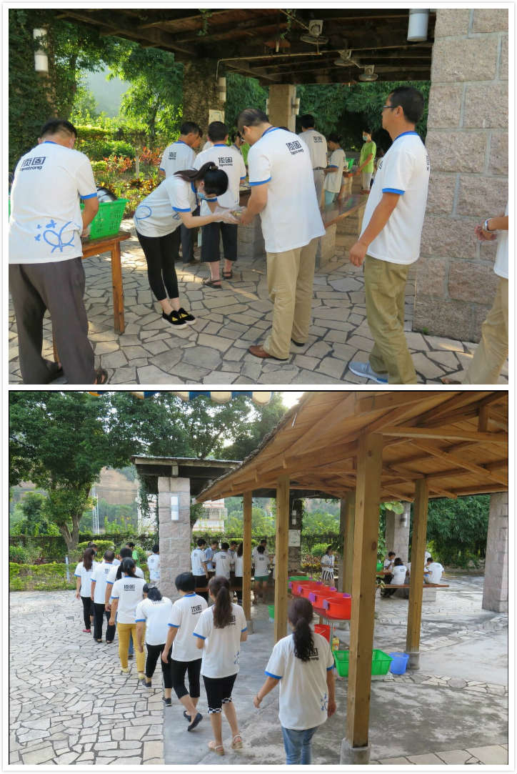 午餐時間,有一道亮麗的風景線:所有用餐人員列隊前進,先是得到誠敬組的問候:“學長,用餐愉快!”爾后,從感恩組成員中鞠躬九十度,雙手接過飯碗開始用餐。所有食糧均是素食,自助盛舀,不得浪費一粒米糧。用餐過程,井然有序,大家用點滴行動踐行“勤儉節約”的美德。