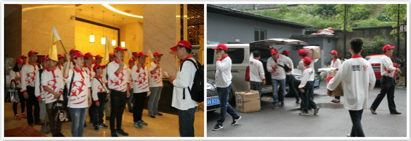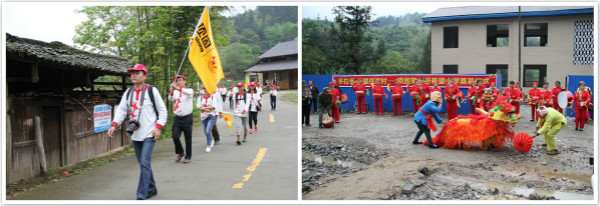 經(jīng)過一夜春雨的洗禮,青山圍繞的盛燕聯(lián)校透著一股泥土的清新。身穿統(tǒng)一服裝的頂固義工,搬著一箱箱贈品徒步走向校園。在路邊,村民們自發(fā)組織了一支鼓樂歡迎隊,打鼓、敲鑼、打叉、舞獅……村民的熱情、樂觀、淳樸讓每一位義工都感到無比的溫暖。