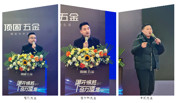 本次大會(huì)還特別設(shè)置了優(yōu)秀渠道服務(wù)商分享環(huán)節(jié)。武漢頂固(渠道服務(wù)商)程剛先生、杭州頂固(渠道服務(wù)商)詹加和先生、東臺(tái)頂固(渠道服務(wù)商)申凱先生從多個(gè)維度分享了他們是如何與頂固五金結(jié)緣,以及如何在頂固五金的賦能下,多方位觸達(dá)客戶,實(shí)現(xiàn)高效拓客,成功破局市場(chǎng),實(shí)現(xiàn)業(yè)績(jī)的突破性增長(zhǎng)。