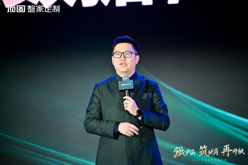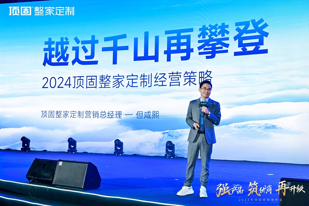 察勢者明,趨勢者智。頂固整家定制營銷總經理但咸熙在會上深度解析家居市場發展趨勢與方向,并發布2024年頂固整家定制經營戰略。他明確表示,2024年是全面轉型升級之年,以“輕高定”為靶心,“品牌線、推廣線、產品線、營銷線、終端線、渠道線”六箭齊發,開弓實干,為經銷商闡明頂固輕高定戰略的突圍之道,提振市場信心。