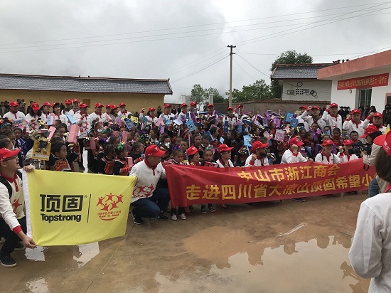 自創立以來,頂固一直號召社會各界為了孩子們的未來捐資助學,此次落成典禮,中山市浙江商會也受到頂固邀請,為孩子們送來了進步的階梯——書籍。贈的是圖書,育的是希望,商會代表與學生代表共同上臺完成了此次“書送希望”的捐贈儀式。