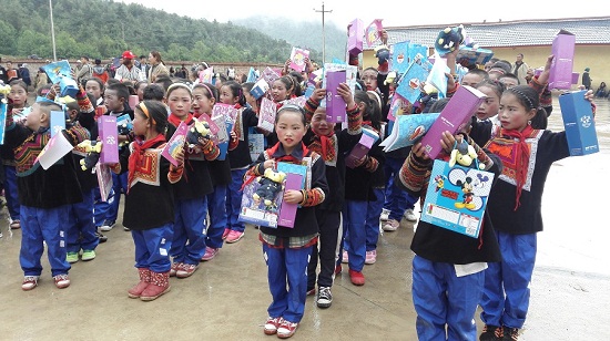 隨后,在各隊隊長的帶領下,頂固義工們將文具、本子、小象、保溫杯等六一禮物分發給孩子們,孩子們井然有序的領取著自己的禮物。送出的是愛心,托起的是希望;看著孩子們拿到禮物后開心的笑容,義工們感到內心的充實。