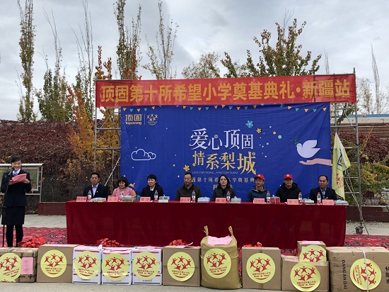 奠基典禮上,頂固集創家居首席營銷官、頂固義工團團長汪光武表示,十年來,頂固始終不忘初心,用愛與責任譜寫“感恩、利他”的主題曲。庫爾勒市是頂固“手拉手”愛心助學計劃的第十站,這里承載著歷史濃厚的光輝與多元化經濟發展的重要使命。頂固在此捐資修建教學樓,就是為了改善學校的教學環境,為孩子們營造積極、健康、快樂的學習氛圍。
