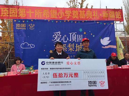 教育是興邦之本,少年強則國強。在頂固第十所希望小學新疆站奠基典禮上,庫爾勒市教育局局長徐紅肯定了頂固對庫爾勒教育事業的貢獻,并表示會傾斜資源,改善學校教學環境,這一切都是為了孩子!